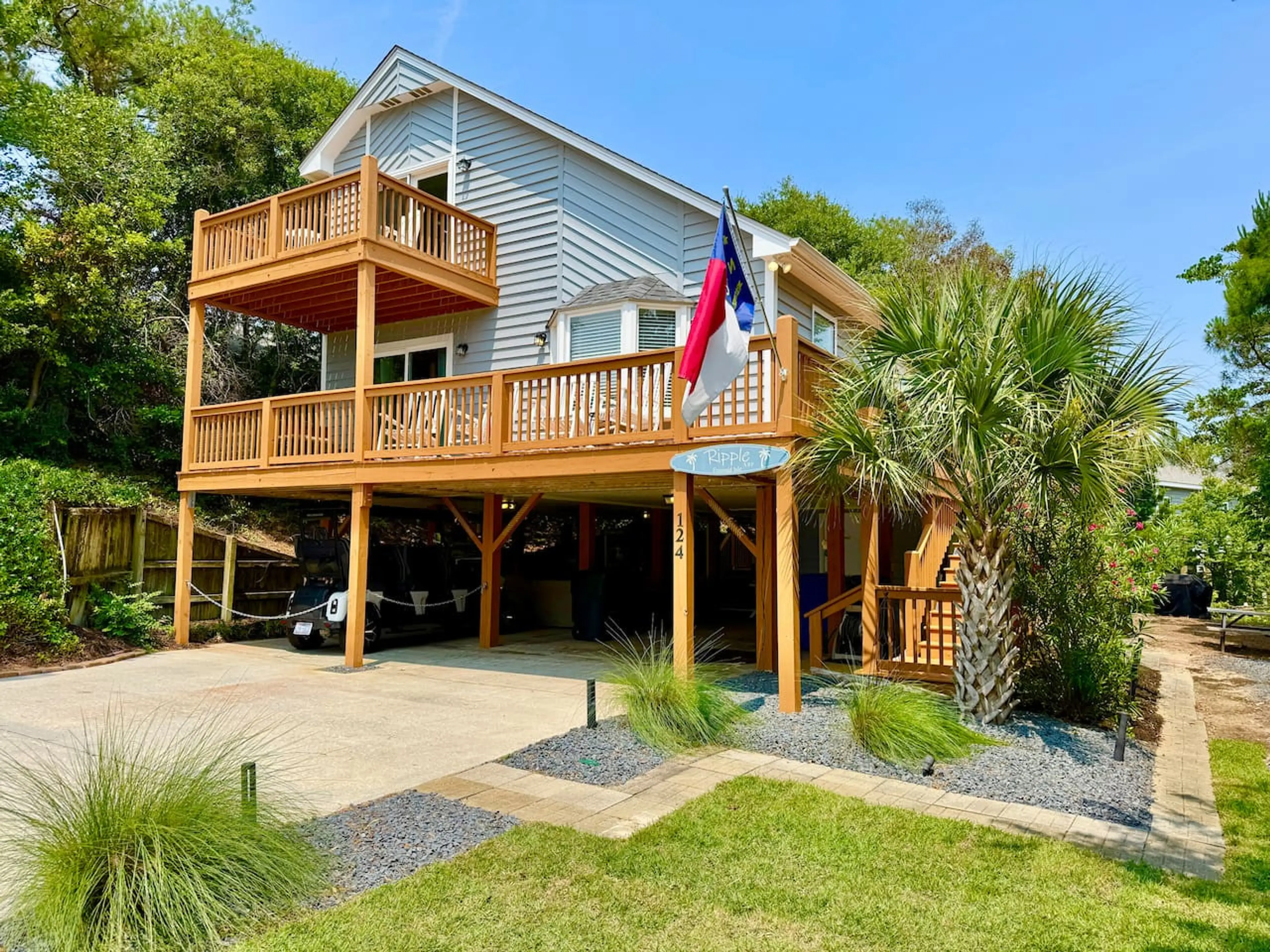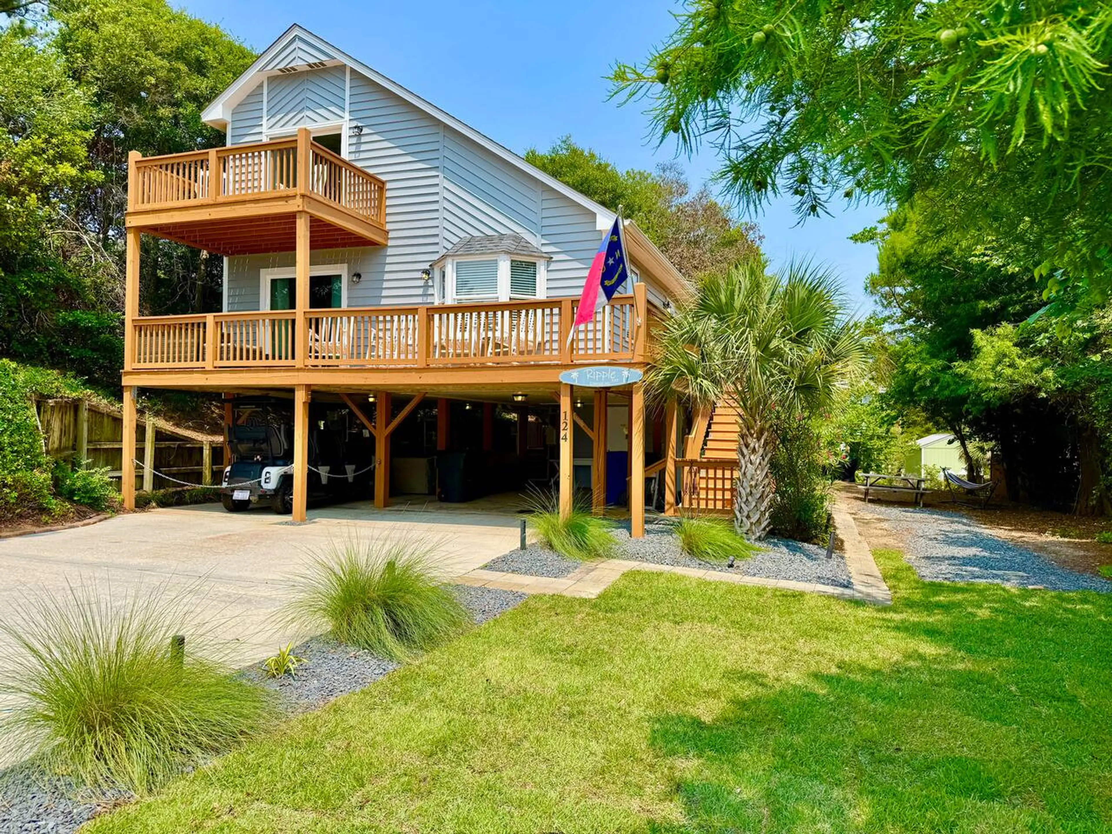 Welcome Home to "Ripple" in Emerald Isle, NC. Ripple is a NEWLY RENOVATED, PET-FRIENDLY home that sleeps 8 guests and offers neighborhood PRIVATE BEACH ACCESS and a 6-person GOLF CART!! Located 4 blocks from the beach/private beach access, "Ripple" is the perfect ocean getaway experience! — 3 bedro...