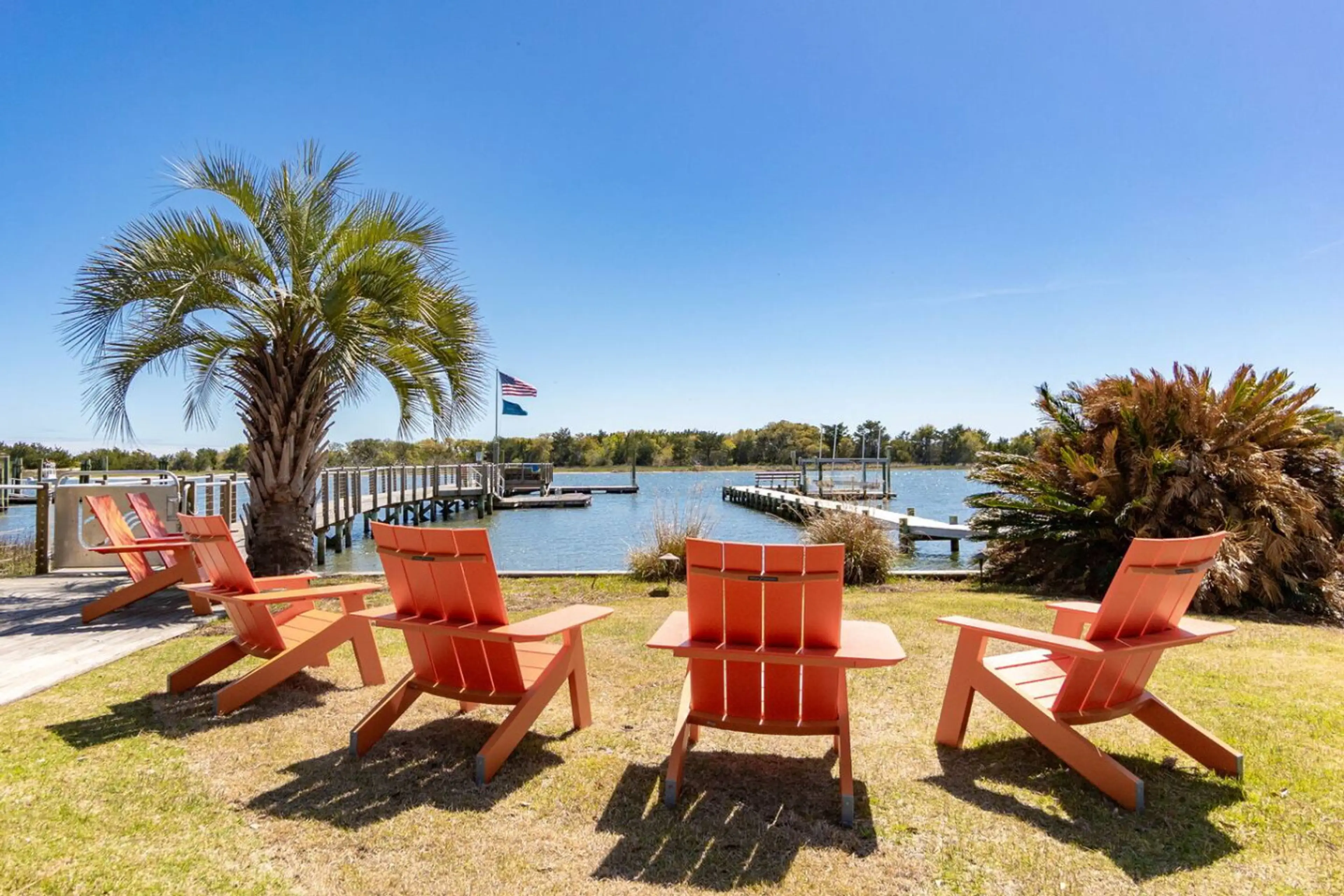 A three-bedroom townhouse inside BeauCoast Resort in Beaufort, NC — a newly developed waterfront community with a resort-style pool, Trader's Lake, pickleball courts, a fitness center, and direct Taylor's Creek access where wild horses and dolphins pass by the pier. Six-seat luxury golf cart include...